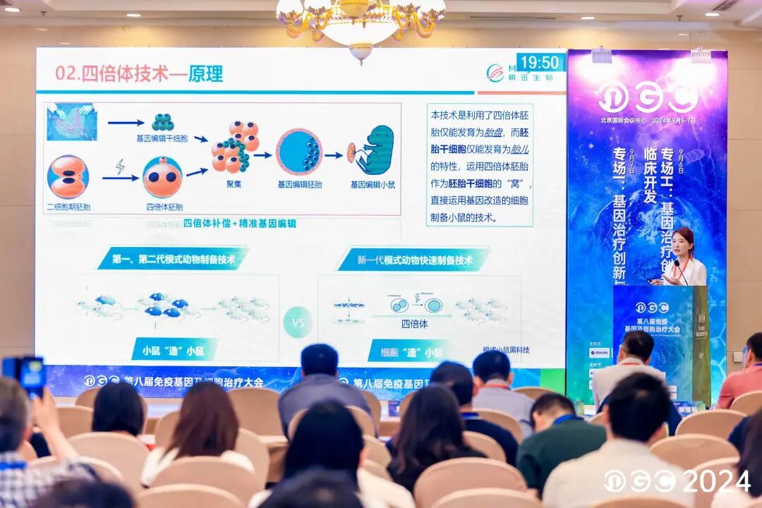 孙骄杨博士在大会上作《四倍体补偿技术在动物模型中的应用》主题报告,系统介绍了小鼠胚胎干细胞的发育机理到高难度胚胎操作技术——四倍体补偿技术的最新应用进展。