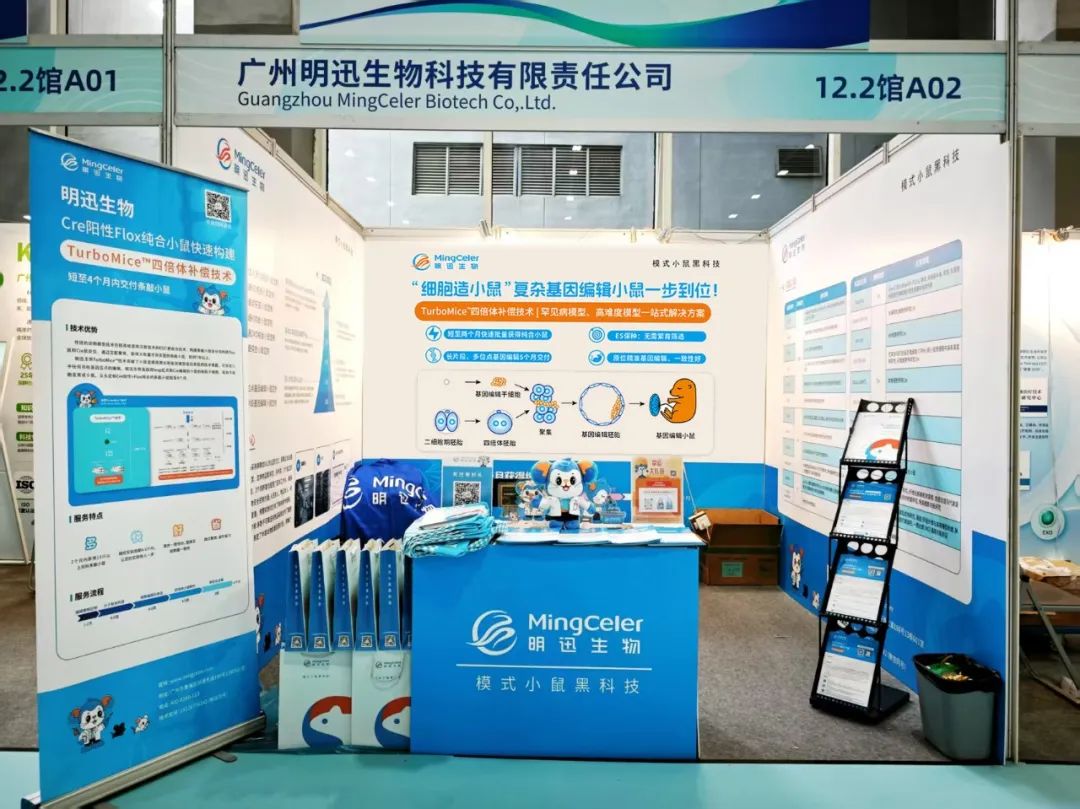 在这场行业交流的盛会中,明迅市场部积极行动,在会场精心布置展台,向在场的各位专家及精英详细展示了模式小鼠先进技术——TurboMice™四倍体补偿技术,与行业同仁们共话未来。