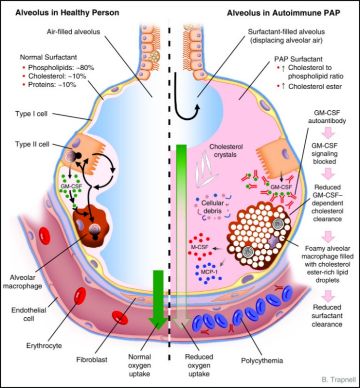 [2]McCarthy C, Carey BC, Trapnell BC. Autoimmune Pulmonary Alveolar Proteinosis. Am J Respir Crit Care Med. 2022 May 1;205(9):1016-1035. doi: 10.1164/rccm.202112-2742SO. PMID: 35227171; PMCID: PMC9851473.