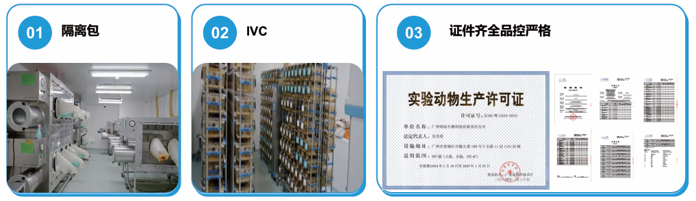 明迅实验动物研究中心采用屏障加IVC的运营方式,屏障区域设置 检疫室、洁净物品接收室、洁净物品暂存室、手术室、3个独立的饲养室;检疫室、手术室、3个饲养室均配置了超净工作台,确保无菌操作的条件;在生物安全控制方面;人员准入、物品准入、和带动物操作、设施设备管理,预警机制均生效了相关操作规程,并进行了培训和严格的考核;多数不可高压的物品采用送专门辐照公司进行辐照灭菌消毒。制定了年度动物质量监测计划,明确了动物准入的条件要求。
