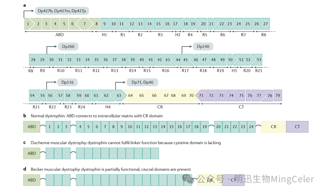 图DMD 和 dystrophin蛋白的示意图