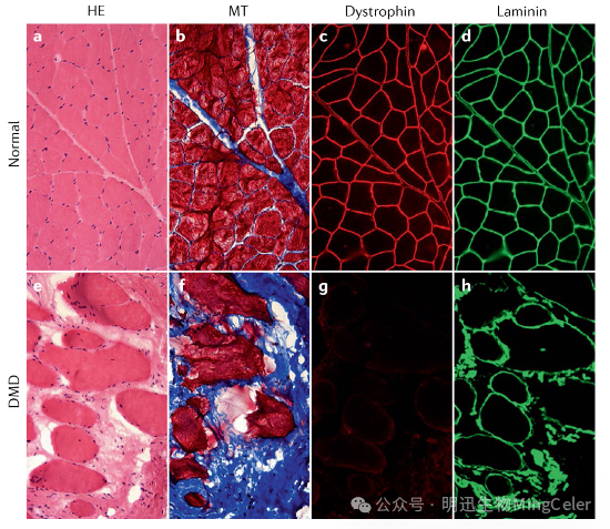 Duchenne肌营养不良症(Duchenne muscular dystrophy,DMD)是一种罕见的X连锁隐性遗传病,主要由DMD基因的突变引起,导致抗肌萎缩蛋白(dystrophin)缺失。这种蛋白对维持肌肉细胞膜稳定性至关重要。
