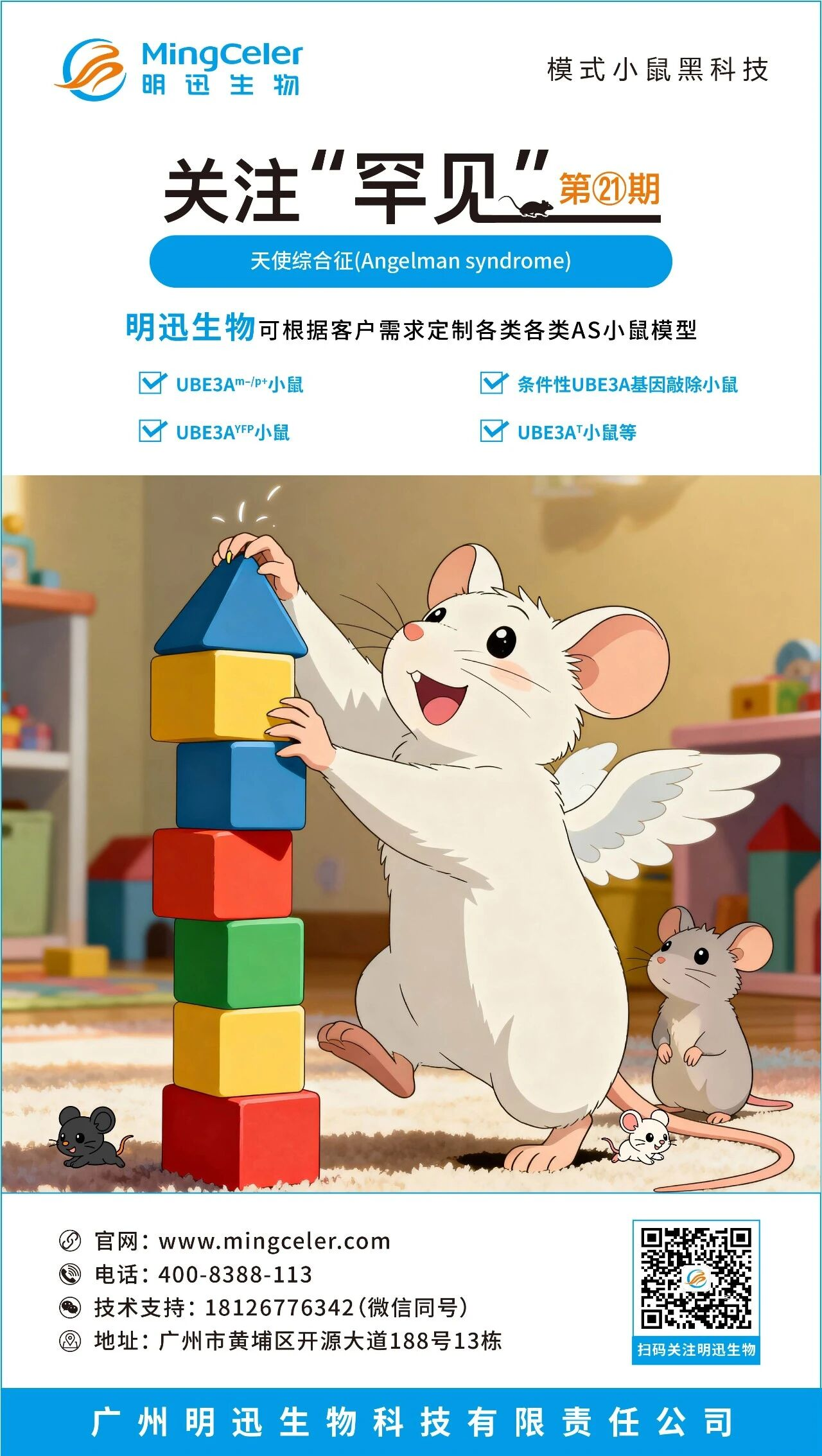 明迅生物可根据客户需求定制各类AS小鼠模型,如UBE3Am–/p+小鼠、条件性UBE3A基因敲除小鼠、UBE3AYFP小鼠、UBE3AT小鼠等,欢迎各位老师来咨询。