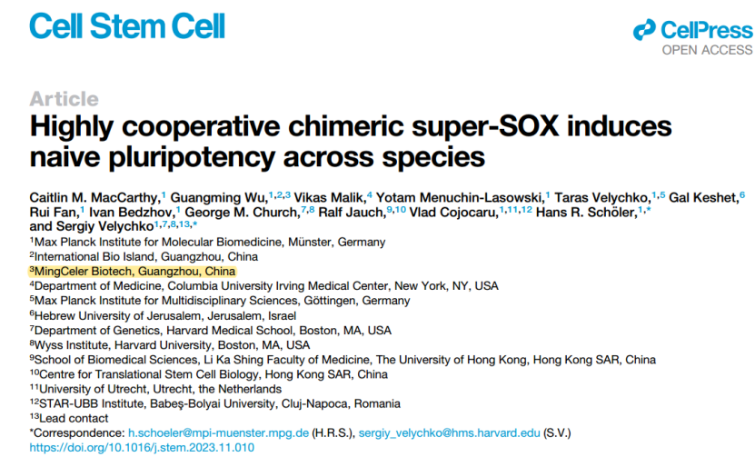 德国马普所Hans R. Schöler研究团队、明迅生物吴光明博士等团队合作,在顶级学术期刊Cell Stem Cell上发表了一篇题为《Highly cooperative chimeric super-SOX: Inducing naive pluripotency beyond species boundaries》的研究文章,深入探讨了上述主题,明迅生物吴光明博士合作并进行了详细的分析。