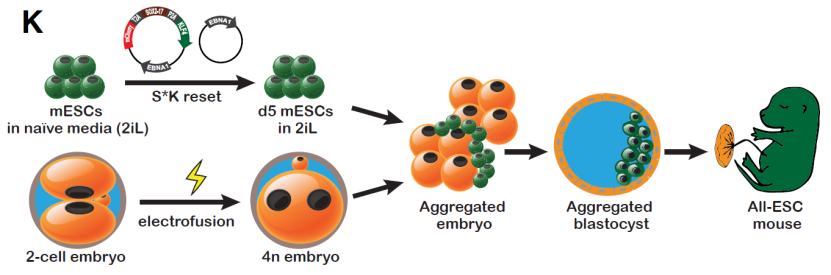 Schematic representation of 4N-complementation experiment with S*K-reset mESCs